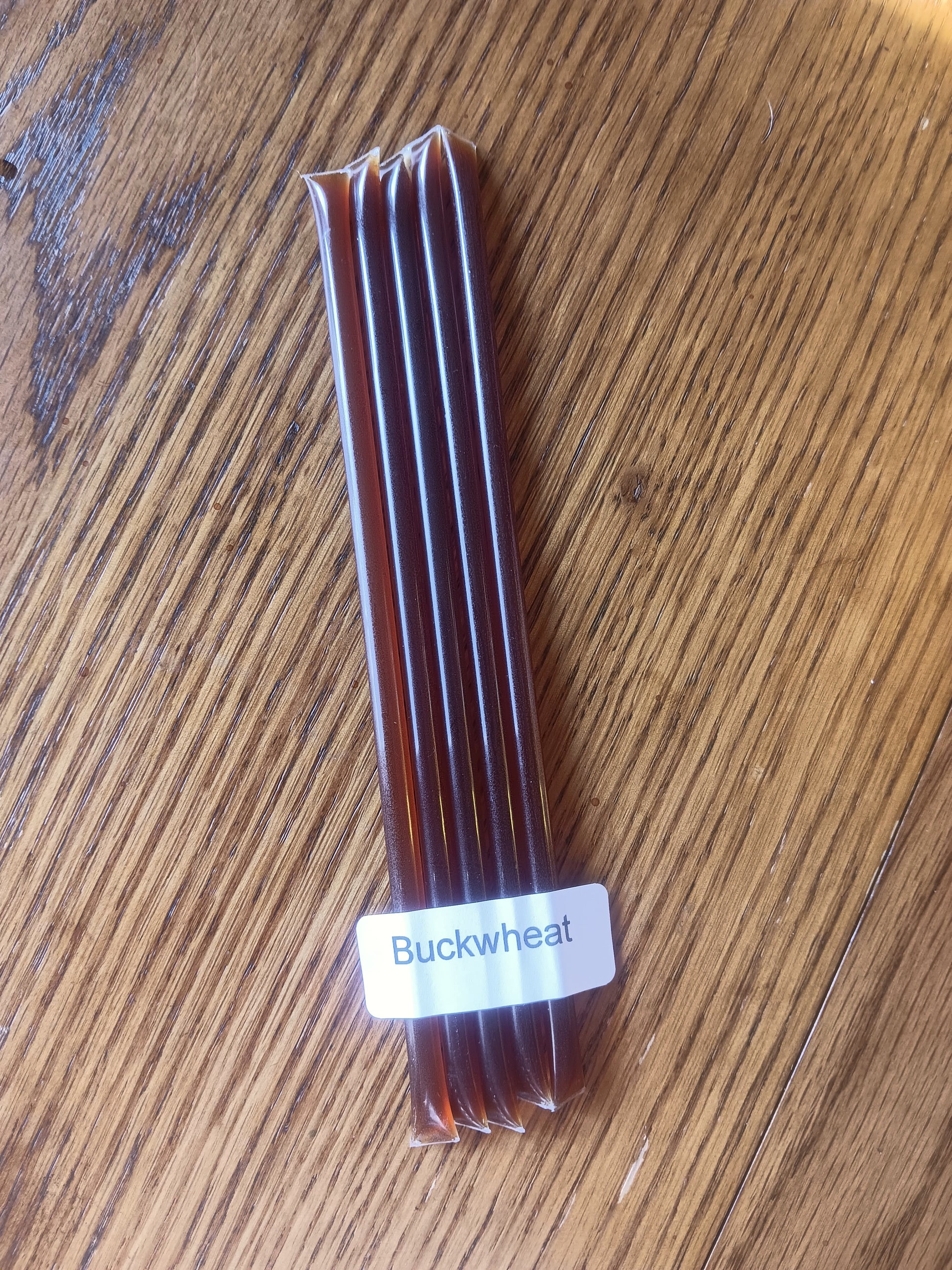 All pure, raw honey! Nothing has been added to the honey in these sticks. All color and flavor differences are based on the flower the bees were pollinating. These sticks are convenient for on-the-go, a little pick-me-up, or to help with a little energy boost and are the perfect size to throw in your bag or include in a gift for your favorite honey-lovers. They are available in groups of 50 or 100. If you would like all of the varieties, our assorted bunches contain an equal number of each honey variety (i.e. 10 of each variety in the bunch of 50 and 20 of each variety in the bunch of 100).